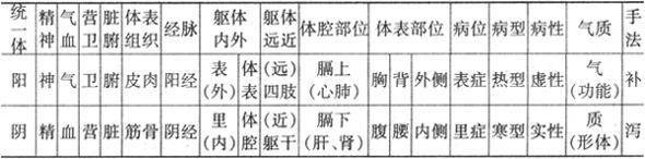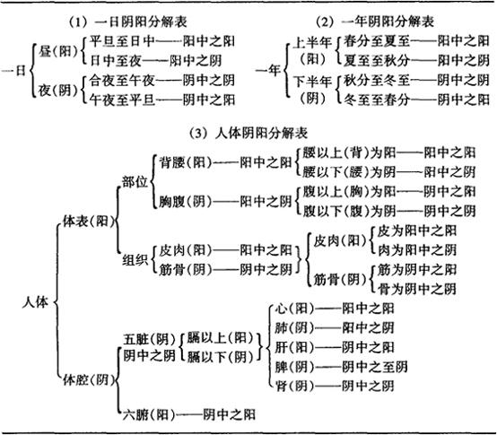 释义 | 阴阳的存在形式 1.离(对立)合(统一)关系 太极图中用混元一体的圆形来代表太极之初,天地未分,合二为一之象;用左白右黑两色鱼形图像来代表昼夜、日月,一分为二的两个阴阳对立面,简要地概括了阴阳离合的对立与统一的关系。这种关系确定了宇宙间一切事物存在的普遍现象和运动规律。所以《易·系辞》中说:“一阴一阳谓之道。”明·张介宾在《类经》中也说:“道者,阴阳之理也,阴阳者一分为二也。”阴阳的“离”必须在统一体内才能对立,“合”必须在对立的基础上才能统一,因此两者是相互依存而不能孤立地存在的。兹举例列表,见表1-1,表1-2。 表1-1 自然界阴阳离合关系表 表1-2 人体中阴阳离合关系表 阴阳的“离”不仅仅是“一分为二”,一次的分离对立,而是可二次分离对立、三次分离对立,有时可至无穷。如《素问·阴阳离合论篇》中说:“阴阳者,数之可十,推至可百,数之可千,推之可万,万之大不可胜数,然其要一也。”这就是阴阳离合关系可以多次分解的形式。举例列表,见表1-3。 表1-3 离合关系多次分解举例 2.互根关系 太极图中的圆形如果横向切开,加上中央的S形曲线,很像一个篆体的互字( 3.动静(运动)关系 太极图上中间S形的线象征着水的波动,就是说明黑白阴阳两鱼的存在是在运动着的。宋·周敦颐在《太极图说》中称:“太极动而生阳,动极而静,静而生阴,静极复动,一动一静,互为其根,分阴分阳,两仪立焉。”所以动静乃是太极运动产生阴阳两仪对立的根本。阴阳的运动乃是阴阳存在的另一种基本形式,也是阴阳互根关系的动态表现。人体生理上的阴阳对立而相互为根,相互作用的种种现象也离不开这种形式,一旦生理活动停止则“神机化灭”,“气立孤危”,人的生命活动也就停止而死亡。 |