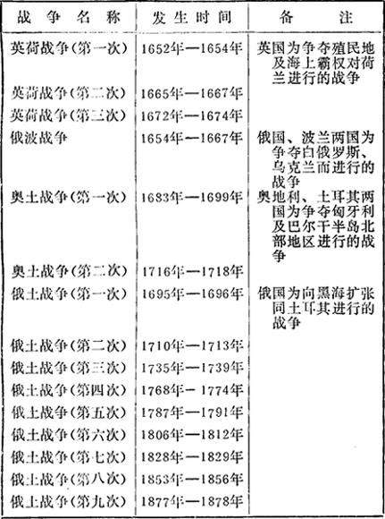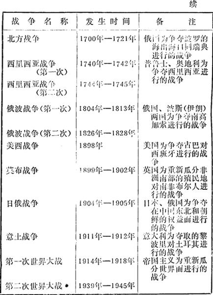 附:世界近代、现代时期为争夺领土、殖民地、为重新瓜分世界而进行的部分战争表