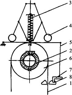 释义 | 限速器与安全钳 电梯作为交通工具的一种,安全问题是人们最关心的,因为乘客的生命就系在几根钢丝绳上,安全系统才是乘客安全的最大保证。 电梯安全系统分机械和电气两部分。 就其机械安全装置而言,主要有:限速器、安全钳、缓冲器、安全窗、盘车装置等。其中,限速器、安全钳装置是十分重要的机械安全保护装置。它的作用在于因机械或电气的某种原因,例如钢丝绳断裂或失控使电梯超速下降时,当下降速度达到一定限值时,将轿厢停止在导轨上的装置。限速器和安全钳单独都不能完成上述任务,要想实现安全功能,必须要靠它们的配合动作来完成。 限速器、安全钳、轿厢三者之间的结构关系如图1.3-1所示。 图1.3-1 限速器、安全钳、轿厢三者间关系 限速器绳是一根两端闭合的钢丝绳,上面套绕在限速器轮上,下面绕过挂有重物的涨紧轮,在限速器绳的某处与轿厢安全钳的连杆系统固定。而连杆系统则安装在轿厢上梁中,如图1.3-2所示。 图1.3-2 限速器拉杆联动装置示意图 这样,使限速器轮的转速与轿厢的运行速度发生了联系,即限速器轮的转速反映了电梯的下降速度。在电梯以额定速度下降时,尽管限速器绳对连杆系统有一个向上的提拉力,但因提拉力比较小,并被图1.3-2中的预压缩复位弹簧力所平衡,所以连杆并不发生转动。当下降速度达到限速器动作的规定速度时,限速器由于离心力的作用卡住而停止转动,此时限速器的夹绳装置将夹住限速器钢丝绳。与此同时,轿厢还在继续下降,这时被夹住的限速器绳就以较大的提拉力使其连杆系统发生转动,并通过安全钳拉条提起安全钳楔块,根据自锁原理,楔块会将轿厢卡在导轨上,达到保护轿厢、乘客的目的。 所有的限速器本身都包括三个机械部分: (1)反映电梯运行速度的转动部分; (2)当电梯运行速度达到限速器动作速度时,根据离心力原理将限速器绳夹紧的机械自锁装置; (3)限速器下端的涨紧装置。 由于限速器是电梯在下降时起保护作用的,所以具有方向性,在安装时必须注意方向。现在有双向限速器,但也是有方向性的,并不是随意安装的,这点必须注意。 典型的限速器如图1.3-3所示。 图1.3-3 典型的限速器结构示意 限速器一般分锤形和球形两种,工作原理分别如下: 锤形限速器的工作原理如图1.3-4所示,当轿厢超速下降时,限速器轮在限速器绳与其绳槽间的摩擦力的作用下,转速加快,因而离心锤所受到的离心力相应地也随之增大,并使离心锤绕着销轴转动,重心外移。当离心力大到一定程度时,离心锤上的凸起将和锤罩上的凸起啮合,使锤罩带动偏心叉一起向着轿厢下降方向转动。当转动到偏心叉中的压绳舌与限速器绳接触时,根据自锁原理,压绳舌将限速器制停,进而带动安全钳动作时将轿厢夹持在导轨上。 图1.3-4 锤形限速器工作原理 球形限速器的工作原理如图1.3-5所示,限速器绳带动限速器旋转,并将其运动传给一对锥齿轮,使其立轴带动一对飞球转动。随着限速器转速的提高,飞球所产生的离心力不断增加。飞球在克服调节弹簧及结构自重沿立轴向下分力的基础上,不断抬高位置。当速度达到限制值时,飞球也会抬到一定高度,同时提拉杠杆也会被拉起,这样如图所示钩子也被拉起,使偏心块或夹块脱离并工作,夹住限速器绳,从而带动安全钳工作。 图1.3-5 典型的球形限速器示意 1-限速器钢丝绳 2-锥齿轮对 3-调节弹簧 4-飞球 5-杠杆 6-限速器轮 7-钩子 8-偏心块或夹块 由于限速器是不允许现场维修和调整的,其工作参数都必须是在工厂完成的,所以这里就不多对其进行介绍。现场操作时,不要对其进行调整,尤其有油封的调节点、螺栓,绝对不允许动。 安全钳要求轿厢在下降过程中达到限速器动作速度时,甚至在悬挂钢丝绳全部断裂情况下,都必须保证使满载轿厢停止在导轨上,并能保持静止状态。 比较典型的安全钳结构有滚轮式、楔块式两种,分别如图1.3-6、图1.3-7所示。当限速器钢丝绳被夹绳装置制动后,安全钳两楔块将被安全钳拉条向上提起。在提起楔块的过程中,楔块与导轨面间的距离越来越小,最终楔块与导轨面相接触。根据自锁原理,楔块与导轨之间的摩擦力使超速下降的轿厢夹持在导轨上。 图1.3-6 滚轮式安全钳结构示意 图1.3-7 楔块式安全钳结构示意 |
