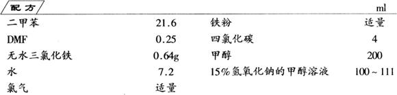 (3)转环上氯化反应 加铁粉0.42g、无水FeCl30.42g、CCl4 4ml,油浴加热,于140℃开始通氯,流量0.98g/min,于170~175℃反应至产物含氯量58%~61%,熔点135~140℃为反应终点,反应时间需12~15h。