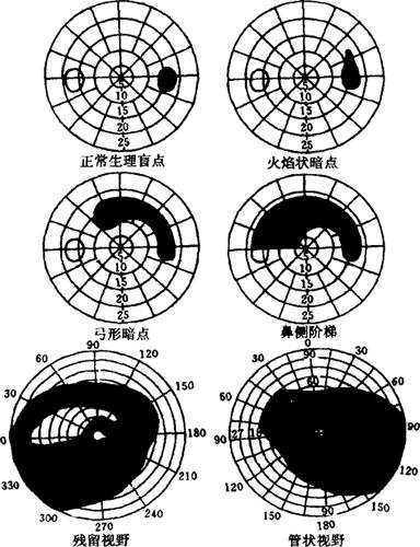 释义 | 青光眼 青光眼是老年人中的常见病和多发病,群众俗称“气朦眼”、“绿风内障”。以眼压持续增高或间断增高、视野缺损(见图9)、视盘凹陷、视神经萎缩及视力下降为主要特征,如不及时治疗会引起失明,本病为主要致盲眼病之一。我国在盲人普查中发现约有1%的人是由青光眼致盲的。所以对青光眼开展群防群治及普查普治工作,具有深远的意义。以下就老年人易患的几种青光眼类型叙述如下。 一、原发性青光眼 1.原发性闭角型青光眼 (1)病因:急性闭角性青光眼,又称急性充血性青光眼。是由于房角关闭,房水排出受阻而引起的眼压升高所致。多发生于老年病人,女性多于男性,大多双眼先后发病。引起本病的因素有①前房浅、房角窄,多见于远视眼,眼球及角膜小,晶体位置比较靠近虹膜,虹膜位置偏前,易阻塞房角,再加老年人晶体增厚,瞳孔缩小,增加了生理性瞳孔阻滞;②精神受刺激、失眠、情绪波动、过度劳累、精神创伤、气候改变等;③使用散瞳剂、过多饮水、长期在黑暗处停留等。 (2)临床表现:多数患者在晚间突然发病,出现眼胀痛、同侧头痛、有虹视现象(即看到灯光周围有彩色光圈)并有视力急剧下降(重者视力仅有指数或光感)等症状,并伴有恶心、呕吐、发热、腹泻。应防止误诊为感冒、胃肠炎、霍乱等,若给大量补液眼压会更高,有可能因此延误治疗时机。 检查可见:①眼球坚硬如石,测量眼压可达40~80毫米汞柱,重者可达100毫米汞柱(1)以上,要采取紧急的降压措施,否则将有迅速失明的危险。②瞳孔呈中度或极度散大,呈椭圆形,光反应消失。③球结膜混合充血、水肿,重者可伴眼睑水肿。④角膜水肿呈雾状混浊,知觉减退,可出现虹视症。⑤前房变浅,房角闭塞,用裂隙灯和前房角镜可明显发现虹膜根部与周边角膜几乎相贴。⑥急性闭角性青光眼大多同时伴有虹膜睫状体炎。房水混浊,角膜内皮沉着物,久而虹膜缺血而呈节段性萎缩。⑦高眼压可在瞳孔区晶状体前囊下有青光眼斑,此斑为灰白色,点状或卵圆形。 本病根据不同的病程,分为临床前期(先兆期)、急性发作期、间歇期、慢性期和绝对期。多数患者在急性期来就诊。 (3)治疗:可使用高渗剂(甘露醇),严重病例首次500毫升快速静脉滴注,以减少玻璃体内水分,使晶状体后移而缓解瞳孔阻滞。同时可服用乙酰唑胺0.25~0.5克。连续使用缩瞳剂,每5分钟点眼一次,连滴10次,至瞳孔缩小为止,点眼期间应压迫泪囊以免吸收中毒。1%的毛果云香硷或1%毒扁豆硷眼药水点眼、可乐定或0.5%噻吗心胺点眼每日1~2次(但对心肺功能不全、哮喘病人禁用),同时应控制饮水、保持通便,服用镇静剂。高眼压控制后,切勿突然停药,以免出现反跳现象。待眼压稳定正常,眼部无炎症及充血反应后,应及早手术。根据房角粘连的不同程度可选择不同的术式,如房角粘连大于1/2,可行滤过性手术(如小梁切除术),巩膜下虹膜嵌顿术或非穿透性小梁手术;房角粘连小于1/2,可行虹膜根部切除术或激光虹膜根部切除术。与白内障有关的高眼压应立即摘除晶状体。建议另一只眼作预防性激光或手术虹膜根部切除术,以免健眼急性发作。对绝对期青光眼无光感、眼压不能控制、反复发作者易引起角膜失代偿,为解除患者痛苦,可行睫状体激光光凝术、冷冻术或球后注射氯丙嗪25毫克。 2.原发性开角型青光眼 (1)病因:开角性青光眼又名慢性单纯性青光眼。由于房水排出系统阻力增加所引起眼压升高,房角是正常开放的。本病病情发展缓慢,以视神经乳头凹陷增大、萎缩及典型的视野改变为特征。随年龄增加发病率升高,双眼发病,糖尿病及高度近视患者中发病率高。 (2)临床表现:患者自觉症状大多不明显,有轻度眼胀、视力疲劳和头疼。在劳累、生气、暗处停留时加重。早期眼压不稳定,一天内有数小时眼压升高。也可作暗室试验、散瞳试验以确诊本病。检查可见视乳头凹陷增大、视神经损害、视网膜神经纤维层萎缩及视野缺损,早期中心外暗点及鼻侧阶梯状暗点,晚期可形成管状视野,可保存颞侧视岛。眼压描记,房水流出系数降低。 (3)治疗:慢性单纯性青光眼患者生活要规律,避免精神刺激,不能劳累、生气。药物控制可选用0.25%噻吗心胺、可乐定、0.5%贝他根、2%美开郎、地匹复林及1%毛果芸香硷眼药水点眼。眼压高时,可短期配合服用碳酸酐酶抑制剂。应定期查眼压,密切注意视功能(视野)的变化,观察病情有无发展,如情况好,可用药观察治疗,如用药效果不明显,建议及早行抗青光眼手术或行氩离子激光小梁成形术。 二、继发性青光眼 继发性青光眼是眼局部的疾病或某些全身病在眼部表现出青光眼的体征和症状。本病使原发病复杂化,也使诊断治疗复杂化。以下就老年人中常见的继发性青光眼类型叙述如下。 1.新生血管性青光眼 (1)病因:新生血管性青光眼又称出血性青光眼、虹膜红变性青光眼及血管机能不全性青光眼。本病多见继发于眼后段的疾病,如视网膜中央静脉阻塞(一般栓塞3个月内发生)、糖尿病视网膜病变、色素膜或视网膜的肿瘤或炎症,这些病变引起视网膜缺氧而产生一种新生血管生成因子,这些因子刺激虹膜形成新生血管。新生血管延伸到房角,附着于小梁网表面影响房水的排出,致使眼压升高,使房角周边前粘连、房角关闭,故治疗较困难。 (2)临床表现:本病多能查到原发病的体征和症状。本病具有急性青光眼