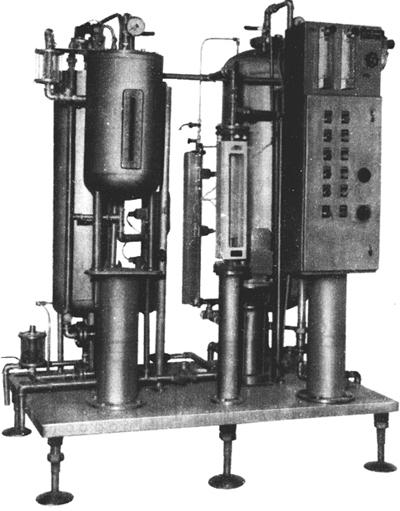 释义 | 静态混合器式气水混合机 (一)用途与特点 本机可以将水、糖浆、二氧化碳气体三者一次混合供灌装使用,还可用于稀释啤酒、啤酒充气以及气酒等的生产。 本机采用静态混合器实现气液混合,其传质面积大、阻力损失小、能耗低、效率高、结构简单。本机采用二氧化碳回流脱气,既节省二氧化碳气又能达到脱气目的,使脱气水有较好的预碳酸化效果。 本机采用自动控制系统并设有CIP清洗工艺流程,可方便地对全机进行化学消毒、热消毒以及清水冲洗。 (二)结构组成与整机外形 图4-5-2所示静态混合器式气水混合机,是一种HS型气水混合机结构。主要由储存罐、静态混合器、糖浆罐和预碳酸罐组成。 图4-5-2 HS型气水混合机结构组成示意图 1-调节螺杆 2-底座 3-水过滤器 4-水泵 5-预碳酸化罐 6-糖浆罐 7-浮球液位控制器 8-糖浆过滤器 9-LZB-40流量计 10-液位指示器 11-压力表 12-电接点压力表 13-安全阀 14-供气箱 15-过滤减压阀 16-CO2进气阀 17-进气口 18-电气柜 19-储存罐 20-静态混合器 21-碳酸化泵 22-成品出口阀 净化水首先在预碳酸化罐内排除氧气,然后与糖浆混合,经流量计后进入静态混合器与二氧化碳气混合,从而制成含有二氧化碳气的成品汽水。这成品汽水贮存在贮存罐内,可随时向罐装机供应。 HS型气水混合机外形如图4-5-3所示。 图4-5-3 HS型气水混合机外形 (三)主要技术参数 静态混合器式气水混合机性能参数见表4-5-2。 表4-5-2 静态混合器式气水混合机性能参数 |