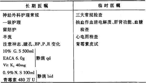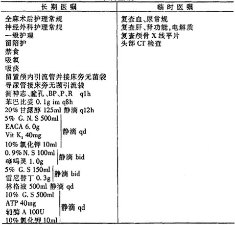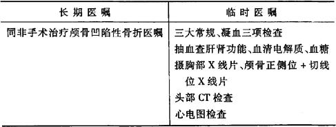 说明:如果颅骨凹陷性骨折合并有脑挫伤或颅内血肿(非手术治疗),则术后医嘱参照脑挫伤医嘱。