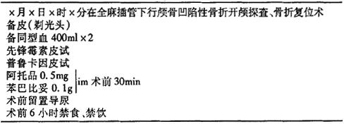 (2)颅骨凹陷性骨折开颅探查、凹陷骨折复位术术前医嘱