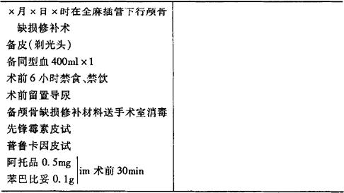 (4)颅骨缺损修补手术医嘱