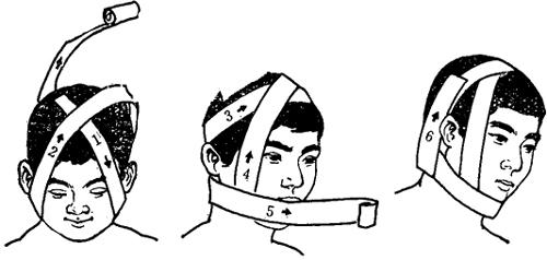 【固定方法】 闭口位用宽7厘米的普通纱布绷带固定下颌两周(图13~2)。