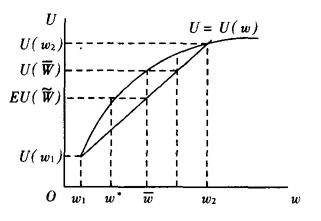 效用函数U=U(ω)满足d2U/dω2<0,W-W*可以衡量风险厌恶程度。