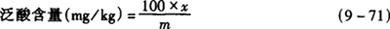 释义 | 食品中泛酸的测定方法 化学名:泛酸钙(Fansuangai;Calcium Pantothenate) 结构式: 分子式:C18H32CaN2O10 相对分子质量:476.54 一、泛酸钙的鉴别 1.试剂和溶液 1.1 氢氧化钠。 1.2 硫酸铜。 1.3 酚酞。 1.4 盐酸。 1.5 三氯化铁。 2.操作步骤 2.1 取本品约50mg,加氢氧化钠试液5mL,振摇,加硫酸铜试液2滴,即显蓝紫色。 2.2 取本品约50mg,加氢氧化钠试液5mL,振摇,煮沸1min,放冷,加酚酞指示液1滴,并滴加盐酸溶液(9→100)至溶液退色后再多加0.5mL,加三氯化铁试液2滴,即显鲜明的黄色。 2.3 本品的红外光吸收图谱应与对照的图谱一致。 2.4 本品的水溶液显钙盐的鉴别反应。 二、食品中泛酸的测定方法 1.试剂和溶液 1.1 乙腈 分析纯。 1.2 乙腈-0.02mol/LKHPO4溶液(1:9) 向1份容积乙腈中加9份0.02mol/LKH2PO4,用盐酸调节pH为3。 1.3 硅酮树脂。 1.4 硫酸锌 特级。 1.5 磷酸二氢钾 特级。 1.6 0.02mol/LKH2PO4溶液 取2.72g磷酸二氢钾,加水溶解成1000mL。 1.7 标准溶液准确称取在五氧化磷干燥器中干燥的泛酸钙1.0918g,加水溶解成1000mL,作为标准液,此液1mL相当泛酸1mg。准确吸取此液1mL,2mL,4mL,8mL,12mL,分别加水成100mL,作为标准曲线用标准液(1mL分别相当泛酸10μg,20μg,40μg,80μg,120μg)。 2.仪器 带紫外分光光度计检测器的高压液相色谱仪。 测定条件:填充化学结合型硬脂硅烷的色谱柱,内径6.2mm,长25cm; 洗脱液:乙腈-0.02mol/LKH2PO4溶液(1∶9); 流速:1mL/min; 测定波长:200nm 3.标准曲线 分别吸取10μL标准曲线用标准液,注入高压液相色谱中,根据峰高绘制标准曲线。 4.定量 4.1 样品液的制备 将样品切碎,准确称取约10g,加60mL水和1滴硅酮树脂,均质5min。均质液用少量水定量转入离心管中,用0.1mol/LHCl溶液调节pH为4~5,加入10mL(3→20)硫酸锌溶液充分混合,离心分离,上清液用滤纸过滤,用100mL容量瓶收集滤液,离心管中残渣用少量水冲洗于同一滤纸上,用少量水洗滤纸,洗液与滤液合并,加水成100mL。此液用滤膜过滤器滤过,作为样品溶液。 4.2 定量 准确吸取样品溶液10μL,注入高压液相色谱仪中,将所得峰高从标准曲线中求出样品溶液中泛酸的浓度,按式(9-63)计算样品中泛酸含量(mg/kg)。 5.分析结果的表述 式中 x——样品溶液中泛酸浓度,μg/kg m——取样量 泛酸钙含量(mg/kg)=泛酸含量(mg/100g)×1.087 泛酸钠含量(mg/kg)=泛酸含量(mg/100g)×1.100 |
