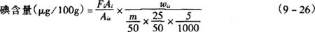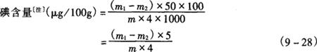 释义 | 食品中碘的测定方法 化学名:碘化钾(Potassium Iodide) 分子式:KI 相对分子质量:166.00 一、碘的鉴别方法 1.试剂和溶液 1.1 碘化钾。 1.2 氯仿。 2.操作步骤 2.1 10%本品溶液在无色火焰中燃烧,火焰呈紫色。 2.2 向10%本品溶液中加氯的饱和水溶液,碘析出而溶液呈黄至红色,加入氯仿后振摇,氯仿层呈紫色。 二、碘化钾的含量测定 取本品约0.3g,精密称定,加水10mL溶解后加盐酸35mL用0.05mol/L碘酸钾溶液滴定至黄色,加氯仿5mL继续滴定,同时振摇,至氯仿层颜色消失。1mL碘酸钾(0.05mol/L)相当于16.60mgKI。 三、食品中碘的测定法 (一)气相色谱法 1.原理 碘在酸作催化剂的条件下与丁酮反应生成有机碘丁酮。利用电子捕获检测器对卤化物具有高灵敏度的反应。用气相色谱仪、电子捕获检测器测定,标准碘液或碘化钾与丁酮反应作外标,与样液对照,计算得率。 2.试剂和溶液 2.1 碘化钾 分析纯。 2.2 1mg/mL标准碘母液 溶解0.1307g碘化钾(经烘干去水分)于去离子水中,移入棕色容量瓶,并用去离子水定容至100mL。 2.3 10μg/mL标准碘工作液 取1mL母液于100mL棕色容量瓶中,用去离子水定容。 2.4 0.02%亚硝酸钠 溶解0.02g分析纯亚硝酸钠于100mL去离子水中。 2.5 澄清剂。 2.5.1 溶液1:用去离子水溶解21.9g乙酸锌,加33mL冰乙酸,稀释至100mL。 2.5.2 溶液2:溶解10.6g亚铁氰化钾于100mL去离子水中。 2.6 2-丁酮。 2.7 石油醚 分析纯,60~90℃。 2.8 正己烷 分析纯。 2.9 无水硫酸钠 500℃灼烧5h。 2.10 浓硫酸 分析纯。 3.仪器 气相色谱仪,带电子捕获检测器。 超声波处理机。 4.测定方法 4.1 样品处理 称取试样3g,用少量去离子水溶解,加澄清剂溶液1、2各3mL,摇匀,定容至50mL,加30mL石油醚,超声15min,弃去石油醚,过滤,取滤液20mL于分液漏斗中加25mL去离子水,0.7mL浓硫酸,0.3mL2-丁酮,1mL0.02%亚硝酸钠溶液,摇匀,室温下静置20min,用20mL、15mL、10mL正己烷萃取3次,弃去水相,合并正己烷,用正己烷洗至中性,过无水硫酸钠,再用少量正己烷洗无水硫酸钠,定容在50mL棕色容量瓶中,备用。 4.2 测定 气相色谱仪工作条件: 色谱柱:Φ3mm,长2m玻璃柱,填以2.3%×E60,60~80目Chromosorb; 柱温:90℃: 电子捕获检测器温度:140℃; 汽化室温度:140℃; N2流量:40~50mL/min; 基流:1.0nA; 量程:10; 纸速:5mm/min; 进样量:标准与样品均为5mL。 5.分析结果的表述 式中 Fi——校正因子 Ai——样液峰面积 Ais——标准峰面积 wis——标样浓度 m——样品量 (二)比色法 1.原理 以碳酸钠固定碘、硫酸锌助灰化、高温干灰化法破坏有机质,以碘化钾形式保留在灰分中,然后用水溶解,离心分离去除含碳物质,利用碘对亚硝酸钠破坏硫氰酸铁的催化作用,使橘黄色的硫氰酸铁定量地褪色,比色测定剩余硫氰铁的颜色,在一定范围内,碘浓度与光密度呈线性关系。 2.试剂和溶液 2.1 30%碳酸钾。 2.2 10%硫酸锌。 2.3 0.006mol/L硫氰化钾 溶解0.23g硫氰化钾于水中,稀释至1000mL。 2.4 硫酸铁铵试剂 溶解77g硫酸铁铵〔NH4Fe(SO4)2·2H2O〕于400mL水中,添加(167±1)mL浓硝酸,稀释至1000mL。 2.5 0.3mol/L亚硝酸钠 溶解2.07g亚硝酸钠于水中,稀释至100mL(当天配制)。 2.6 4mg/mL标准碘贮备液 精确称取预先在干燥器中干燥好的碘化钾0.5232g,溶于水中,稀释至100mL(至少可稳定1个月)。 2.7 40μg/mL标准碘中间液 精确吸取标准碘贮备液10mL,用水定容至1000mL。 2.8 0.2μg/mL标准碘工作液 精确吸取中间液5mL,用水定容至1000mL,避光或贮存于棕色玻璃瓶中(每月配制1次)。 3.仪器 瓷坩埚:30mL 高温炉:0~1000℃ 离心机:4000r/min 分光光度计 4.测定方法 4.1 标准曲线 准确吸取标准工作液0.0,2mL,4mL,6mL,8mL,10mL于6只100mL容量瓶中,各加30%碳酸钾1mL,用水定容(浓度分别为0.0,4ng/mL,8ng/mL,12ng/mL,16ng/mL,20ng/mL),按比色测定方法进行,以检测标准工作液碘含量为横坐标,光密度为纵坐标,作图。 4.2 样品处理 精确称取匀样(碘含量不超过1μg)于瓷坩埚中,加1.0mL30%碳酸钾、1.0mL硫酸锌溶液用水、玻璃棒搅匀后,放95℃烘箱中烘干,加盖放入100℃高温炉中,缓慢升温至550~600℃,保持1h,立即取出坩埚冷至室温,再加1mL硫酸锌溶液,再干燥,灰化如前,直至得到白色灰分,用(50±0.5)mL去离子水分数次将灰分转移到离心管内,以3000r/min离心沉淀10min,上清液吸入干燥洁净瓶内待测,同时作空白。 4.3 比色测定 吸取标准工作液(0,4ng/mL,8ng/mL,12ng/mL,16ng/mL,20ng/mL),样液和试剂空白各4.0mL,于具塞试管中,分别加去离子水1.0mL,硫氰化钾1.0mL,硫酸铁铵2.0mL,充分摇匀以准确1min间隔时间添加1.0mL亚硝酸钠溶液,摇匀,放置30min,再以准确1min间隔,倒入1cm比色杯中,于波长450nm下测其吸光度。 5.分析结果的表述 分别以样液和试剂空白的吸光度代入线性方程求得碘含量(ng),然后按式(9-27)计算: 回归方程: y=0.62-6.12-3x (9-27) 式中 y——光密度 x——碘含量,ng 式中 m1——样液含碘量,ng m2——试剂空白含碘量,ng m——样重,g 注:本法测出的碘为样品中总碘。 |