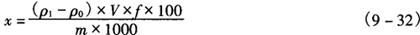 5.2 回归方程法。由各元素标准稀释液浓度与对应的发射强度计算出回归方程(也可输入计算器得出回归方程)。计算见式(9-33)。 c=ay+b (9-33) 式中 c——测定用样品中元素浓度(可由计算器直接得出),μg/mL a——曲线斜率 b——曲线截距 y——该测定样的发射强度 由回归方程或由计算器得出的测定样品及试剂空白液的浓度后,再由式(9-34)计算。 式中各符号的意义同标准曲线法说明。 |