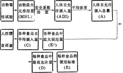 释义 | 食品添加剂 食品添加剂是指食品在生产、加工、保藏过程中,用添加、混和、浸润等方法向食品基料中加入少量天然物质或合成化学品。 1.按用途分类(16-74) 表16-74 食品添加剂分类 2.食品添加剂使用标准 食品添加剂在食品中最大使用量是食品添加剂使用标准的主要数据,食品添加剂使用标准的制定程序如图16-12所示。 图16-12 食品添加剂使用标准的制定程序示意图 如果已知苯甲酸对大白鼠毒性试验的最大作用量(MNL)为500mg/kg,外推到人体,则人体日允许摄入量: 3.食品色素(表16-75) 表16-75 食品色素 4.调味剂(表16-76) 表16-76 调味剂 5.增味剂(表16-77) 表16-77 增味剂 |