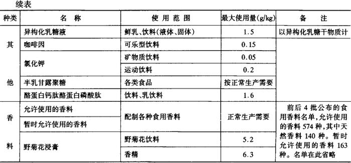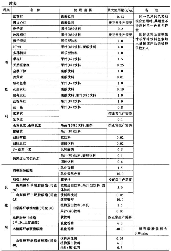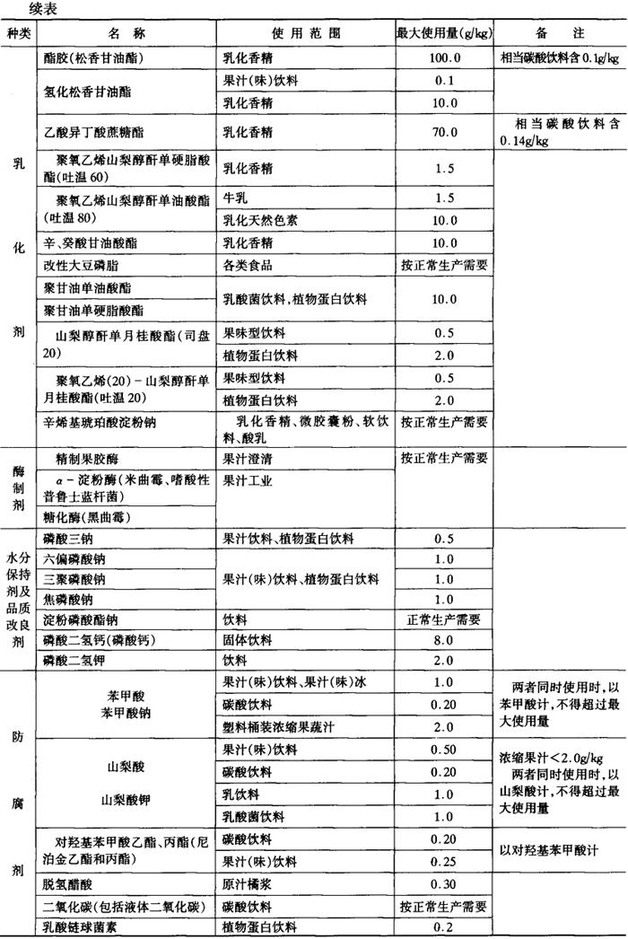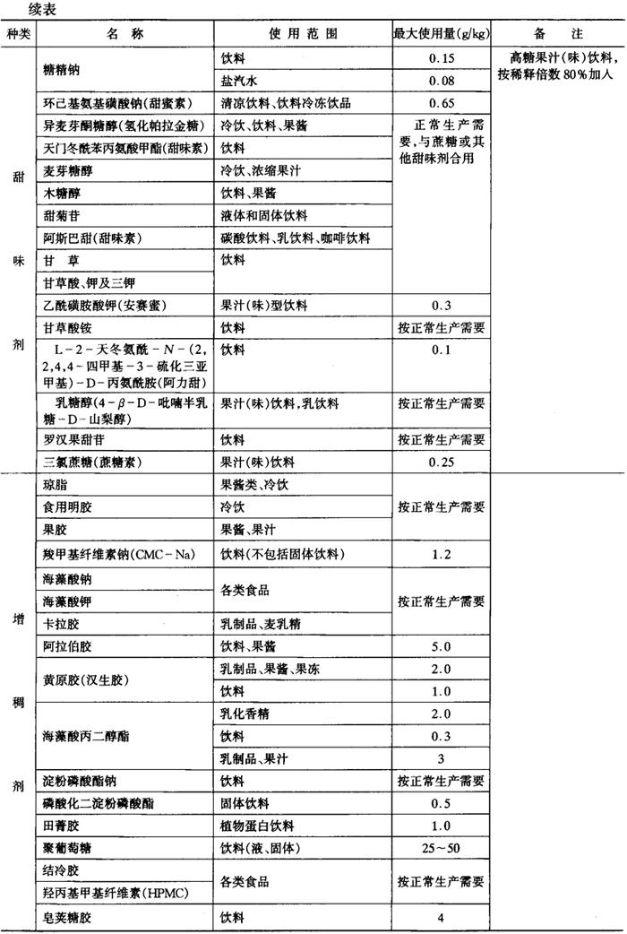 本标准规定了食品添加剂的品种、使用范围及最大使用量。