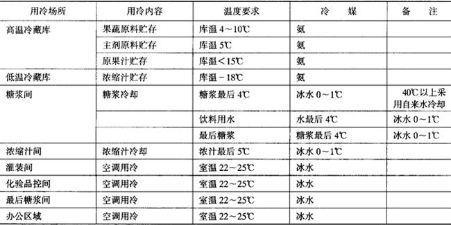 释义 | 饮料厂用冷分类及制冷要求 1.用冷分类 与其他类型的工厂相比,饮料厂用冷有非常明显的特点,供冷设计是饮料厂的一个重要部分,选择合适的制冷设备不但对生产和产品质量有直接影响,还关系到工厂投资和产品成本等。 饮料厂用冷范围主要由冷藏库用冷、生产工艺用冷、空调用冷三个部分组成。冷藏库用冷用于果蔬原料、主剂原料和浓缩汁等的贮存;生产工艺用冷用于糖浆、饮料用水、浓缩汁的冷却等;空调用冷用于灌装间、暂存间等和其他生产与生活场所的空气调节。 2.制冷要求 制冷设计应按照国家标准《冷库设计规范》(GBJ72)的要求执行。 根据实用、高效、节能的原则,用冷的温度要求和冷媒用冷场所、用冷内容等工艺内容,一般可按表6-7-58选用。 表6-7-58 饮料厂制冷的温度要求 |