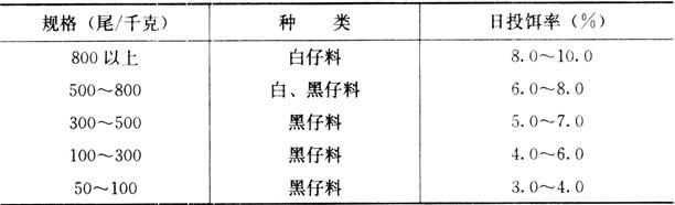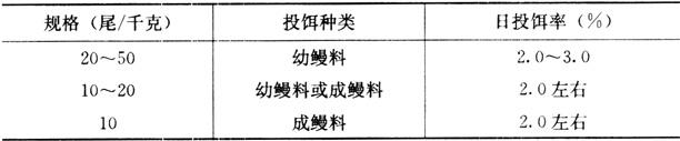 释义 | 饲料及投喂 欧洲鳗的营养需求与日本鳗有所不同,在生产实践中直接使用日本鳗饲料常会造成三类苗比例高达30%~50%,生长速度明显低于日本鳗,除了养殖措施原因外,营养不平衡也是其主要原因之一。中国水产科学研究院淡水渔业研究中心通过大量研究实验,得出欧洲鳗的营养需求量推荐值见表3-11,维生素及矿物质添加量推荐值见表3-12。 表3-11 不同生长期欧洲鳗的营养需求推荐值(%) 表3-12 维生素及矿物质添加量的推荐值(每千克饲料添加量) (一)白仔鳗的饵料及投喂 1.开食饵料丝蚯蚓的准备 (1)丝蚯蚓暂养池 丝蚯蚓暂养池要建立在注排水方便的地方,面积5~10米2,高度0.2~0.3米。池上方要遮荫,保证池内阴凉、挡雨。 (2)丝蚯蚓的漂洗 购进的丝蚯蚓一定要放进暂养池内暂养,让微流水不断漂洗,并经常翻动,让丝蚯蚓排净体内污物,并洗出死虫,反复多次,洗净污物和死虫。 (3)丝蚯蚓的药物处理 投喂前的丝蚯蚓必须经过严格的消毒杀菌处理。避免鳗苗因摄食丝蚯蚓而得病。丝蚯蚓可用1~2毫克/升的水溶性氟哌酸浸泡消毒30分钟,并可于每千克丝蚯蚓中添加1克水溶性北里霉素一起投喂。 2.开食及诱食 当水温升到24~26℃、池水淡化至2~3时,保持1天后,即可开始诱食。诱食时间从夜间开始。前三天用碾碎后的丝蚯蚓浆由全池泼洒并逐渐向食台集中的方式进行,第一天投饵率为苗体重的8%~10%,吃食后第二天起每天可递增投饵率5%~8%,第四天开始定点投喂丝蚯蚓全虫,并及时将鳗苗诱至食台摄食,日投饵率为苗重的35%~45%左右。 投饵时停开增氧机30~40分钟,采用灯光诱食上台,灯功率为15~25瓦,投喂前开启,食完关闭,并逐渐将饵料台由池底向水面提升,直至水面下3~5厘米。 每天分4次投喂,每6小时1次,量的分配应按照晚上多、白天少原则进行,每次摄食时间控制在30分钟以内,剩余丝蚯蚓应及时捞除。 3.饵料转换 经过25~30天投喂丝蚯蚓后,白仔鳗规格达到800尾/千克左右,即可开始饵料的转换。每天3餐。此时投饵率降至10%左右,第一、二天丝蚯蚓∶白仔料为3∶1,第三天丝蚯蚓∶白仔料为1∶1,第四天丝蚯蚓:白仔料为1∶3,第五天全部投喂白仔料,白仔料日投饲率降为6%~8%,并根据鳗苗吃食情况好坏酌情加减。 (二)黑仔鳗的饲料及投喂 黑仔苗培育一般投喂黑仔饵料。选别后规格较小的黑仔苗仍可投喂白仔饵料,大规格黑仔苗可通过白仔饵料转换为黑仔饵料(转换方法与培育白仔苗时饵料转换一样)投喂。饲料中添加一定比例的水、鱼油及维生素等,加水量一般为饲料量的1.3~1.5倍,鱼油添加量一般控制在3%以内,盛夏高温季节,鱼油的添加量应在2%之内或停止添加。黑仔苗阶段,由于鱼体仍较小,饲料加工时一定要搅拌成柔软、黏性强、不易流散的团状后方可投喂。一般每天投喂2次,上午5:00~6:00、下午5:00~6:00各投喂1次。上午投喂量一般占总投饵量的40%,下午占60%,每次投喂量以20分钟内吃完为宜。日投饵量的增减一般根据每天吃食状况及鳗鱼活动状况和天气情况来调整,正常每5天调整1次投饵量。盛夏高温季节,池水水温超过28℃以上时,要控制日投饵量,切忌过饱食。一般情况下控制在3%以内,若换水量有限时,日投饵量宜控制在1.5%以内。不同规格黑仔鳗投饵率见表3-13。 表3-13 不同规格黑仔鳗投饵率(25℃±1℃) (三)幼、成鳗的饵料及投喂 投喂幼鳗饵料或成鳗饵料,日投饵率见表3-14。 表3-14 幼、成鳗养殖投饵率(25℃±1℃) 由于幼、成鳗养殖阶段,历时较长,一般要经历夏、秋、冬季及翌年开春后的饲养,故各个时期的喂养管理有所不同。 1.夏季高温期 由于放养的鳗种规格较大,在高水温条件下,大规格鳗种的摄食状况及活力均不如小规格鳗种,故此时期要适当控制投饵量,一般日投饵率控制在3.0%以内,鱼油添加量要控制在2.0%以内。如吃食情况差、水源供应紧张可停止添加鱼油或只添加1.0%,日投饵率可控制在1.5%以内,以避免欧鳗高水温期摄食能力较弱且摄饵时间较长,造成饵料散失而导致水质腐败恶化。一般每天投喂2次,早晨6:00、晚上6:00各投喂1次。此时早上投饵率占全日饵料量60%~70%,下午为30%~40%。当水温28℃以上每天只投喂1次,日投饵率小于1.0%。 2.秋季 进入秋季,气候凉爽,气温、水温均较适宜欧鳗的生长,此时为欧鳗生长的黄金季节,此时期可适当增加投喂量,日投饵率可提高至2.5%~4.0%,鱼油添加量一般为2.0%~3.0%,秋季欧鳗的摄食状况及活力均较强,生长也较为迅速。 3.冬季、开春期 冬季气候逐渐变得寒冷,此时水温逐渐下降,一般来说,欧鳗对于低温的适应能力要比日本鳗强,只要日水温波动不大,即使水温只有14~16℃时,欧鳗的摄食状况及活力仍较好。如供气条件许可,可将池水温度加热到20~22℃,如供气量有限,可将池温控制在18~20℃,尽量避免池水温度日温差波动过大。此时投饵率一般尚可达到1.2%~2.0%,鱼油添加量为1.0%,如养殖规格较大,供气不足,只要简易搭盖薄膜保温,一般在南方地区,池水温度尚可维持在14~16℃,投饵率尚可维持在0.8%~1.2%。此时欧鳗生长较缓慢,饵料转换率较低,为此可改为日投喂1次即可。至翌年开春后,气候又逐渐转暖,水温也逐渐缓慢上升,欧鳗的摄食状况及活力也逐渐增强。此时欧鳗的规格已较大,多为出售选别后回池的旧鳗,故应采取缓慢上升的方式提高日投饵量,一般投饲率可上升至1.12%~2.0%,鱼油添加量为1.0%~1.5%。幼、成鳗阶段不同水温下的投饵率见表3-15。 表3-15 幼、