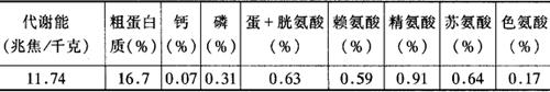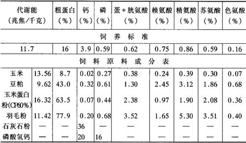 释义 | 饲料配合示例 因为目前广大的农村养鸡户不具备计算机设施。这里用手算方法进行一下配方示例,有相当经验者采用计算器进行饲料配合也不是十分困难的事。 1.饲养标准的选定 现为一群迪卡褐商品代蛋鸡配制产蛋中期料(产蛋率79%~86%),从表5-17中找到饲养标准。 2.饲料原料品种的确定 现手中有国标二级玉米、国标二级豆粕、羽毛粉、玉米蛋白粉(CP60%)、石灰石粉、磷酸氢钙、食盐、多种维生素与微量元素等原料,并有添加蛋氨酸与赖氨酸的条件,计划配制一种无鱼粉日粮。从表5-8、表5-9、表5-10中分别查出这些原料的营养成分。 3.列饲料配合表(表5-20) 表5-20 饲料配合表 根据原料价格,按表5-19的经验,初步确定添加63%玉米、20%豆粕、2%羽毛粉、5%玉米蛋白粉,留下10%空间来调整矿物质元素的平衡,现初步测算代谢能与粗蛋白质情况。结果代谢能为11.5兆焦/千克,粗蛋白质18.8%,看来是能量低、蛋白高。再对玉米与豆粕比例进行调整,改为玉米67%、豆粕16%,其他暂不变,计算代谢能与粗蛋白;结果代谢能为11.66兆焦/千克、粗蛋白质为17.4%。还得再对玉米、豆粕比例进行调整,改玉米为69%、豆粕14%,这时计算结果是:代谢能11.74兆焦/千克、粗蛋白质为16.7%;这种代谢能值与粗蛋白质含量基本还可以。以玉米69%、豆粕14%、羽毛粉2%、玉米蛋白粉(CP60%)5%比例对其他营养成分进行计算。 从计算结果看,钙、磷因没有添加矿物质原料,缺口很大,氨基酸中除赖氨酸缺乏外,其他氨基酸基本都略有超出。下面确定磷酸氢钙添加量。因为标准中总磷为0.59%,从几种植物性饲料中可提供0.31%的总磷,还缺0.28%的总磷,磷酸氢钙含磷为16%,大约添加1.8%的磷酸氢钙便可满足磷的需要。1.8%磷酸氢钙含钙为0.36,加上几种植物性饲料原料中钙量,总共为0.43%;标准中钙含量为3.9%,还缺钙3.47%,石灰石粉含钙36%,大约添加9.7%的石灰石粉便满足了钙的需要。还要添加0.37的氯化钠与0.2%的赖氨酸添加剂,维生素与微量元素大约要添加0.13%,这样几种添加物总量为12.2%,与10%预留量相差2.2%,最后对配方进行综合平衡调整,最后配方为:玉米68.5%、豆粕12.3%、玉米蛋白粉(CP60%)5%、羽毛粉2%、石灰石粉9.65%、磷酸氢钙1.85%、盐0.37%、矿物质微量元素与维生素0.13%、赖氨酸0.2%,计算营养水平为: 整个配方营养水平基本达到饲养标准的要求。 |
