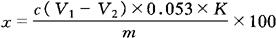 释义 | 饼干的检验 (一)样品的采集与预处理 1.采样 采取1kg含脂肪少的饼干样品,或0.5kg含油脂较多的样品,然后用对角线取2/4或2/6或根据样品取有代表性样品,在玻璃乳钵中研碎,混合均匀后放置广口瓶内保存于冰箱中。 2.样品预处理 (1)含脂高的样品,称取50g,混合均匀,置于250mL具塞锥形瓶中,加50mL石油醚(沸程:30~60℃),放置过夜,用快速滤纸过滤后,减压回收溶剂,得到油脂,供测定酸价,过氧化值用。 (2)含油脂中等的样品,称取100g左右,混合均匀后,置于500mL具塞锥形瓶中,加100~200mL石油醚,以下按(1)自“放置过夜”起依法操作。 (3)含油脂少的样品,称取250~300g,混合均匀后,于500mL具塞锥形瓶中,加入适量石油醚。浸泡样品,以下按(1)自“放置过夜”起依法操作。 (二)感官检验 取两块以上样品切开后观察,应具有各种饼干正常的色泽,不得有霉变及其他外来污染物。取切开样品尝其味,不得有酸败异味。 (三)理化检验 1.水分的测定 参见第二章第一节中直接干燥法测定(取均样1g左右)。 2.酸价、过氧化值、铅、砷、食品添加剂、黄曲霉毒素B1的测定 参见第二章第二节。 3.饼干的碱度测定(QB 1254-1991) 吸取试液[同本节一 (三)2制备]50mL于250mL三角瓶中,加甲基橙指示液2滴,用0.1mol/L盐酸标准溶液滴至微红色出现。记录耗用盐酸标准溶液的体积,同时用蒸馏水做空白试验。 分析结果的表述:饼干的碱度以100g试样中所含碳酸钠的克数表示,按下式计算: 式中 x——碱度(g/100g); V1——滴定试液时消耗盐酸标准溶液的体积(mL); V2——空白试验消耗盐酸标准溶液的体积(mL); c——盐酸标准溶液的实际浓度(mol/L); m——样品的质量(g); K——稀释倍数; 0.053——与1.00mL 1mol/L盐酸标准溶液相当的碳酸钠的质量(g)。 允许差:同一样品的2次测定值之差,不得超过2次测定平均值2%。 4.饼干块数(QB 1254一1991) 用感量为5g(最大称量6000g)的案秤,随机称取500g样品,检查其块数。 5.包装饼干净重(QB 1254-1991) 每袋(盒)净重不大于500g的样品,用感量为1g(最大称量6000g)的案秤称量。 每袋(盒、箱)净重501~5000g的样品,用感量为5g(最大称量6000g)的案秤称量。 每袋(箱)净重大于5000g的样品,用最大称量为5000kg的台秤称量。 6.薄饼干厚度(QB 1254-1991) 边缘厚度:在饼面的中心位置划一十字,取饼边缘4个点,用精度为0.02mm的游标卡尺测量每个点的厚度,取平均值。取4次重复测量结果的平均值为边缘厚度。 饼干厚度:将10块饼干顺向堆叠,精度为0.02mm的游标卡尺测量总高度,取4次重复测量结果的平均值。 式中 H——饼干厚度(mm); H1——测量时10块饼干的总厚度(mm)。 (四)微生物检验 参见第二章第三节。 |