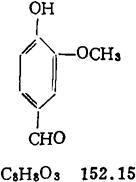 化学名4-羟基-3-甲氧基苯甲醛。国内现有两种生产工艺:-为以邻氨基苯甲醚为起始原料,先制成愈疮木酚,再在催化剂存在下与由乌络托品分解而成的甲醛生成相应的取代苄醇,被对亚硝基N,N二甲基苯胺氧化而成香兰素;另一为从亚硫酸盐纸浆废液中的木质素,在碱性介质中经水解、氧化而制得的香兰素。