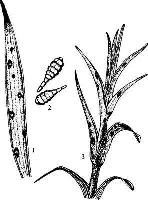 释义 | 香石竹叶斑病 【症状】 发生叶和茎上,偶有发生蕾和花上。发病多从下部叶片开始,产生淡绿色水渍状的小圆斑,后变紫色。以后随着病斑扩大,病斑中央发生枯死。病斑圆形、椭圆形或半圆形,边缘褐色,大小4~5毫米,中央枯死部分灰白色。在有些品种中,边缘圈内有紫色环。几个大病斑合并后呈大而不规则的死亡圈,最后斑点间组织转黄枯萎,整片叶枯死,呈枯稻草色。潮湿空气时,病部被黑色粉末状霉层,即病原菌的分生孢子和孢子梗。茎部多在节上发病,病斑灰褐色。随着病情发展,病斑环割茎部,呈褐色干腐,造成其上部枝叶枯死,最后干枯枝条出现稻草色。在花蕾上病斑圆形,黄褐色,水渍状,甚至花瓣上也有黑褐色斑和黑色霉层(图5-33)。 图5-33 香石竹叶斑病 1.叶上症状 2.分生孢子 3.枯株症状 【病原】 为Alternaria dianthi Stev.et Hall.。分生孢子倒棍棒状,暗褐色,链状着生,有横隔4~8个,纵向或斜向分隔1~6个,分隔处常缢缩。分生孢子梗曲折,褐色,成丛着生,有分隔1~4个。 【发病规律】 有病的插条和土中的病残体是重要侵染来源。病菌可由气流、雨水传播,可从气孔及伤口侵入。从4月上旬到初冬均可发生。温室中全年发病。梅雨和台风季节,特别是8月下旬到9月上旬发病迅速,且严重。露地栽植比温室栽植的病多,大花、宽叶、草体柔软的品种比花小、叶细长、草体挺硬的发病重。 【防治方法】 (1)从健株上选无病插条,防止初次侵染。保护地栽植要保持通风、透光,避免雨淋。茎顶育苗、瓦筒栽培,选栽健苗、及时排水,可减少发病。宜实行2年以上轮栽,并选用抗病品种。 (2)露地栽培,应喷施1%的波尔多液保护剂1次。摘芽、切花之后应立即喷药,可选75%百菌清或50%代森锰锌、50%克菌丹、80%代森锌可湿性粉剂500倍液。其中以百菌清防效最好。隔10天喷1次。 |