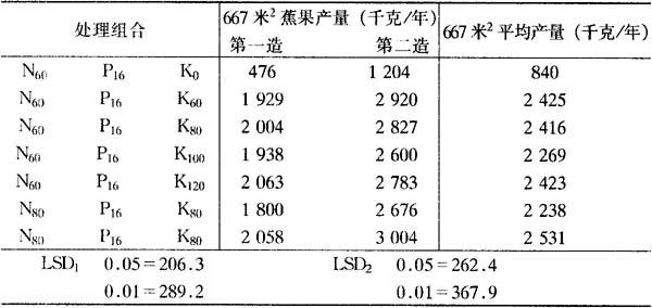 释义 | 香蕉施肥技术 (一)施肥时期 香蕉18~40叶期的生长好坏对香蕉产量与质量起决定性作用。 1.施肥关键时期 (1)营养生长中后期(叶期18~29片,春植植后3~4个月,夏秋植植后5~7个月) 这时对肥料反应最敏感,重追肥可促进植株早生快发,培育成叶大茎粗的蕉株,进行高效的同化作用,积累大量有机物质,为花芽分化奠定基础。 (2)花芽分化期(叶期30~40片,春植植后5~7个月,夏秋植植后8~11个月) 此时正处于香蕉营养生长转入生殖生长的花芽分化过程,需大量营养供给,重追肥可促进花芽分化过程陆续抽出的11片功能叶得以最大限度地进行同化作用,制造更多的有机营养,为形成穗大果长的花蕾提供充足营养。实践证明,促进花芽分化以早施重追肥为好,尤以29片叶期前施用效果最佳。如遇正造蕉的植株,每年春暖后已进入26~29片叶期,即将花芽分化,上年越冬与当年早春重追肥,能促使蕉株越冬后迅速恢复生长,及时制造大量有机营养,满足幼穗分化的需求。 2.蕉园类型 施肥应根据不同蕉园类型和香蕉生育期施用适宜的肥料品种与配比。 当年新植蕉园和宿根蕉园的施用时期如下: (1)新植蕉园的施肥 新蕉园依定植期不同而异。在华南地区,香蕉一年四季均可定植,但以春植为主,秋植其次,夏冬植较少。香蕉种植一次可多年收获,所以不论其种植季节如何,施基肥是重要的环节。正如蕉农所说,“香蕉好坏看头年”。定植后,追肥原则是“薄肥勤施,关键期施重肥”。 ①春植蕉种植后,20天左右即开始长新根,这时要进行第一次追肥,若管理得当,2~3月份定植,9~10月份抽蕾,次年2~3月份可收“雪蕉”,品质和产量都很理想。若用苗高1米以上,已抽有9~10片叶片的大吸芽种植,通过施肥促叶抽蕾,当年8~9月即可开花,12月份可采收蕉果。如果生育进度显示不能赶上收“雪蕉”时,则在夏秋要适当控制肥水,以免在冬季抽蕾开花而受冻害。 ②秋植蕉种植后距冬季低温期尚有3~4个月,要求入冬前苗高达1~1.2米时,次年夏季才能开花结果。因此,早春回暖后应抓紧施足“促苗肥”,到花芽分化前重施一次“促花肥”,到抽蕾时再施一次“促果肥”,采实后再施一次“促芽肥”。 花芽分化是施肥的关键时期,以此为临界期,此生育前期施肥量应占总量的70%~80%,后期仅占20%~30%。据庄伊美报道(1990),台湾南部蕉区的施肥期:第一次于种后1个月施年总用肥量的10%,第二次于种后2个月施总肥量的15%,第三次于种后3~3.5个月施总肥量的25%;第四次于种后4.5~5个月施总肥量的30%;第五次于种后6.5~7个月施总量的20%。 (2)宿根蕉园的施肥 宿根蕉园(也称为旧蕉园),占蕉园面积的比重大,施肥期也较复杂。宿根蕉又分宿根单造蕉与宿根多造蕉。 ①宿根单造蕉的施肥期:一般在冬季蕉苗管理的基础上施肥,开春后于2月、4月、7月、11月各施4次肥。 ②宿根多造蕉的施肥期:一般要施5次肥。第一次于2月份施促苗肥,此期是早春回暖后新根新叶速长期,需要充足养分促其早生快发。第二次于4月份施促花肥,此期气温回升快,植株进入生长量最大,生长速度最快的旺长期,根系吸收养分快而多,促进有机营养大量积累,为花芽分化提供足量的营养物质。因此这是施肥的又一关键时期。肥料用量要大,施肥为培养健壮植株,提高产量奠定基础。第三次于6~7月间花序分化时施足促果肥,花序分化后约1个月左右即抽蕾、开花,这次肥也应加大用量,为提高单果重提供充足营养。第四次于母株蕉果采收前施促芽肥,以促进吸芽的萌发和速长,以代替原母株;第五次于母株收获后施过冬肥,以增强吸芽的抗寒能力,为来春蕉苗的茁壮成长打好基础。因此,宿根蕉施肥重点是要保证花芽分化和果实发育期对养分的需求,即施好和重施促花肥和促果肥。 (二)施肥量的确定 施肥量依地区、土质、气候、宿根与新植、种植密度、栽植目的不同而异。我国蕉区多为降雨量大、养分淋失量严重的华南红壤土上,施肥量应较大田作物多些。科学施肥量应进行大量的田间试验,通过生产实践反复校正而得。我国各省(自治区)的蕉园施肥量如表6-14,从表中可知,我国各省(自治区)香蕉三要素间比例大致为1∶0.5~1∶1~2。台湾省香蕉研究所长期肥效定位试验得出的三要素推荐施肥量,第一年为氮130~180克/株·年、五氧化二磷120~160克/株·年、氧化钾400~450克/株·年,三者比例为1∶0.5~1∶3,第二、三年适当减少磷用量。香蕉体内钾含量最高,增施钾肥有明显的增产效应。据梁孝衍等试验表明:珠江三角洲冲积土3年生宿根蕉适宜的667米2用氮量为60千克,用钾量为80千克。黄宝孙(1987)在广西的坡地红壤蕉园,667米2栽150株“矮把香蕉”,3年试验结果证明:采用三要素1∶0.5∶1.5的比例配方比1∶0.4∶1.2的增产41.2%,株施肥量分别为0.4、0.2和0.6千克。华有群等(1989)用“矮把香蕉”在湛江市缺P、K的土壤上试验结果:以株施氮300克,氮∶五氧化二磷∶氧化钾=1∶0.5∶1.5的产量最高。李如平(1990)在广西浦北县低产蕉园“矮把蕉”,在施有机肥的基础上,667米2施氮45~62千克水平上,氮∶五氧化二磷∶氧化钾=1∶0.2~0.4∶1.5,比习惯用肥增产13.9~19.1%。周修冲(1991)在广东惠阳试验结果(表6-15)表明,增施钾肥增产达极显着水平。 表6-14 我国香蕉主要省(自治区)三要素施用量与比例 (摘引庄伊美资料,1990) 表6-15 矮香蕉NPK配比对产量的影响 (周修冲等,1991) (三)施肥方法 合理的施肥方法应据气候条件、土壤类型,并结合根系生态