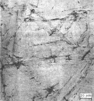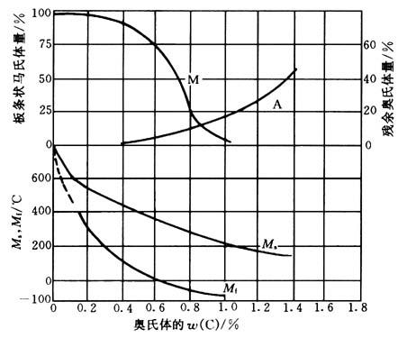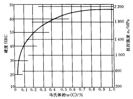 释义 | 马氏体的组织、结构和性能 14.5.2.1 马氏体的组织形态 马氏体因含碳量不同而有两种组织形态,即片状马氏体和板条状马氏体. 1.片状马氏体 片状马氏体主要出现在高碳钢淬火组织中,故也称之为“高碳马氏体”.在光学显微镜下,片状马氏体呈针片状或竹叶状,如图14-13所示.图中,白亮的针是片状马氏体,暗色部分是残余奥氏体. 图14-13 片状马氏体 经低温回火后,片状马氏体变为黑色针状,而残余奥氏体变成白色. 用高倍透射电镜观察分析,可发现片状马氏体内存在大量细小的孪晶结构,横穿马氏体片.孪晶厚度为几纳米到几十纳米.正由于片状马氏体具有这种微细孪晶的亚结构,故又称之为“孪晶马氏体”. 片状马氏体组织的另一个特点是存在大量微裂纹.由于马氏体形成速度极大,各马氏体晶粒高速碰撞相遇,导致在马氏体内部或晶界处出现显微裂纹,如图14-14所示.而且这些微裂纹总是出现在马氏体片相遇处,或是马氏体片与晶界相遇处.裂纹有的横断马氏体片,有的在马氏体面上,有的在奥氏体晶界上.微裂纹密度很高,可达1500~2000条/mm2,裂纹长度约为几个微米到几十微米.奥氏体晶粒越大,淬火后显微裂纹越多这些微裂纹增加了淬火开裂的危险,所以,马氏体组织硬度高、脆性大,且在应力作用下微裂纹会扩展成宏观裂纹,导致工件断裂 图14-14 片状马氏体中的显微裂纹 片状马氏体一般先在奥氏体晶核内部形成,且是一批一批形成,彼此间成一定角度,其大小一般不超过原奥氏体晶粒大校但也有例外.形成过程示意见图14-15 2.板条状马氏体 图14-15 片状马氏体的形成过程 板条状马氏体主要出现在低碳钢中,故亦称之为低碳马氏体.板条状马氏体为长条状晶体,平行成束分布,在光学显微镜下呈板条状,见图14-16.板条状马氏体组织形态特点为: 图14-16 板条状马氏体 (1)存在大量位错.电子显微镜观察分析,每个板条状马氏体内都存在大量位错,位错密度达1012个/cm2.位错分布不均匀,形成胞状亚结构,称之为“位错胞”,见图14-17. (2)自回火.板条状马氏体在形成之后立即发生不同程度的分解,称为“自回火”,即由于板条状马氏体形成温度较高,在较高温度先形成的马氏体条,过饱和固溶的碳能够进行短距离的扩散,发生偏聚和析出——自回火.这种自回火现象令所形成的马氏体强韧性提高,降低淬火变形及开裂倾向,是有利的 3.两种马氏体的形成条件 过冷奥氏体在向马氏体转变的过程中,是形成片状马氏体还是形成板条状马氏体?实验中发现,钢中的含碳量对马氏体的组织形态影响最大.ω(C)<0.2%的钢,淬火后主要形成板条状马氏体;而ω(C)>1.0%的钢,淬火后主要形成片状马氏体;0.2%<ω(C)<1.0%的钢,淬火后为两种马氏体的混合组织,如图14-18所示.通常的情况是,含碳量越多的钢,淬火后片状马氏体越多 4.两种马氏体的组织形态比较 两种马氏体的组织形态比较见表14-5. 图14-17 板条状马氏体中的位错胞 图14-18 奥氏体的碳含量对马氏体形态的影响 表14-5 两种马氏体的组织形态比较 14.5.2.2 马氏体的晶体结构 马氏体具有体心正方结构,如图14-19所示.其中,c轴比其他两个a轴长些,轴比c/a称为马氏体的正方度.在进行马氏体转变时,奥氏体中的碳原子全部保留在马氏体点阵中,可视马氏体为碳在α-Fe中的过饱和固溶体.这些过饱和固溶的碳原子择优分布在沿着c轴的扁八面体间隙中,故使α-Fe的体心立方晶格发生畸变,c轴伸长,其余两个a轴缩短.室温X射线衍射测定:ω(C)>0.2%的马氏体具有正方度(即体心正方点阵);ω(C)<0.2%的马氏体,c/a=1,失去了正方度,具有体心立方点阵. 14.5.2.3 马氏体的性能 图14-19 马氏体晶体结构 一般来讲,高碳马氏体很硬、很脆,而低碳马氏体则又强又韧.马氏体性能与下列因素有关: (1)碳含量.马氏体的强度和硬度主要取决于马氏体的碳含量,见图14-20.由图可见:当ω(C)<0.5%时,马氏体硬度和强度随碳含量升高而急剧增大;ω(C)=0.2%的低碳马氏体,其硬度可达HRC50,抗拉强度σb=1500MPa;当ω(C)=0.4%时,硬度为HRC60,σb为1800MPa以上.对于要求高硬度、抗磨损、耐疲劳的工件,淬火马氏体ω(C)为0.5%~0.6%为宜.对要求高韧性工件,马氏体ω(C)约为0.2%为宜. (2)合金元素.合金元素对硬度影响不大,对强度影响大.碳含量相同的碳素钢与合金钢淬火后,硬度差别不大,但合金钢强度显着高于碳钢. (3)亚结构.马氏体的塑性和韧性主要取决于它的亚结构,即微细孪晶及位错分布状态.片状马氏体中存在微细孪晶,令滑移困难,脆性增加;板条状马氏体中高密度位错分布不均匀,存在低密度区,位错移动范围大,故韧性亦较好. 马氏体性能举例见表14-6. 图14-20 马氏体的硬度、强度与其碳含量的关系 表14-6 马氏体性能举例 马氏体强化原因分析如下马氏体强化一般由下述几方面因素造成: (1)碳对马氏体的固溶强化.碳造成晶格的正方畸变,阻碍位错运动,导致马氏体强化及硬化. (2)亚结构造成强化及硬化.马氏体的亚结构(板条状马氏体中的高密度位错网,片状马氏体中的微细孪晶)会阻碍位错运动,造成强化及硬化. (3)时效强化.马氏体形成后,碳及合金元素向位错及其他晶体缺陷处偏聚或析出,阻碍位错运动,造成时效强化. (4)马氏体片或条之相界面阻碍位错运动,其尺寸越校相界面越大,马氏体强度也越高. |