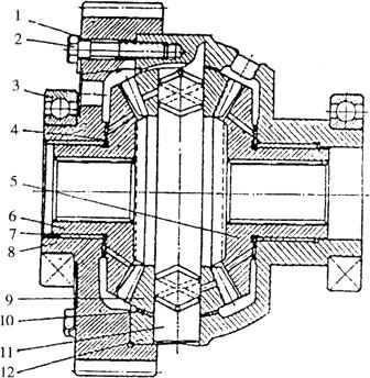 释义 | 驱动桥 驱动桥由中央传动、差速器、最终传动和左右半轴组成。小四轮拖拉机常采用两级中央传动,所以未设最终传动。三轮农用运输车采用一级中央传动,但不设最终传动。 (一)中央传动 1.类型 中央传动按其传动的级数可分为单级中央传动和两级中央传动;按传动件的类型,又可分为链传动、外啮合圆柱齿轮和螺旋圆锥齿轮式3种形式,分别如图3-10a、b、c所示。 图3-10 中央传动类型 a.链传动 b.外啮合圆柱齿轮传动 c.螺旋圆锥齿轮传动 2.功用 (1)将变速器传来的动力传给差速器。 (2)因中央传动的主动齿轮直径小于从动齿轮直径,具有大于1的传动比,所以起减速增扭作用。 (3)当发动机在机车上纵向安置时,采用锥齿轮传动的中央传动,将作用在横向平面的扭矩转变到纵向平面,与驱动轮旋转平面一致。 (二)差速器 1.功用 (1)将中央传动传来的动力平均分给左右半轴。 (2)允许左右车轮以不同的速度旋转。 2.构造 差速器由差速器壳、行星齿轮、行星齿轮轴和左右半轴齿轮组成,如图3-11所示。行星齿轮套装在行星齿轮轴上,行星齿轮轴与差速器壳紧配合在一起,中央传动的从动齿轮通过螺钉与差速壳相连接。 图3-11 差速器 1.锁紧垫片 2.螺栓M10×55TO 3.轴承115 4.半轴齿轮垫片 5.右半轴齿轮 6.左半轴齿轮 7.轴套 8.中央传动被动齿轮 9.行星齿轮 10.行星齿轮垫片 11.行星齿轮轴 12.差速器壳体 3.工作原理 当拖拉机直线行驶时,两驱动轮所受的阻力相同,行星齿轮和差速器壳体、左、右半轴作为一个整体一起转动,而不自转。此时,左、右半轴齿轮的转速与差速器壳体的转速相同,因而两驱动轮的转速相同。拖拉机转向时,内侧驱动轮所受的阻力增大,内侧半轴齿轮转速降低,这时,行星齿轮除绕半轴轴线旋转外,还绕行星齿轮轴自转。外侧半轴齿轮的转速受行星齿轮自转转速的影响而增高,正好符合转向时对外侧车轮提高转速的要求,防止外侧车轮因拖滑而造成轮胎的过早磨损。 (三)半轴 半轴分左右半轴,左右半轴内端分别与左右半轴齿轮以花键连接;左右半轴外端与左右驱动轮相连。因此,左右半轴的功用就是将差速器传出的动力平分给左右驱动轮。 |