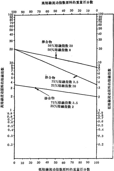 图9-1 高密度和低密度聚乙烯掺合物熔融流动指数的推定