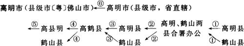 释义 | 高明市 位于东经112°22′~112°55′、北纬22°38′~23°01′之间。 ①1912年称高明县;1952年5月高明县、鹤山县两县合署办公。②1954年6月高明、鹤山两县恢复原建制。③1958年11月高明、鹤山两县合并称高鹤县。④1981年12月,经国务院批准,撤销高鹤县,恢复高明县、鹤山县。⑤1994年4月18日,经国务院批准,撤销高明县,设立高明市(县级市),由省直辖。⑥1995年,高明市(县级市)改为由省直辖,地级市代管。 高明县(县) 见641页“高明市”、884页“鹤山市”。 |