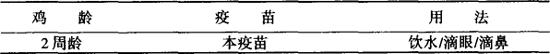 释义 | 鸡新城疫Hitchner活疫苗 说明 鸡新城疫Hitchner活疫苗(Nobilis 适应症 本疫苗适用于肉鸡、后备蛋鸡和种鸡的正常和紧急接种,以及蛋鸡的紧急接种,以防新城疫。接种疫苗的鸡只应健康良好,病鸡及弱鸡接种后不会产生足够的免疫力。 使用方法 1.后备蛋鸡及种鸡 正常接种 紧急接种 2.肉鸡 正常接种 紧急接种 3.蛋鸡 需要对产蛋期内的蛋鸡接种疫苗时,应使用本疫苗。以后每3个月再接种本疫苗一次。 上列计划仅供参考。请根据具体情况或兽医的意见而定。接种本疫苗前后14天,不得接种其他疫苗。对1~5日龄的鸡只接种本疫苗后,应隔3~4周后再行接种。 本疫苗可经饮水、滴鼻或滴眼免疫。 饮水免疫 仅用于2周龄以上的鸡只。应在水中开启疫苗小瓶,用清洁的棒搅拌,将疫苗和水混匀。疫苗溶解后,其性质脆弱,数小时后即可失活,所以: (1)应确保稀释后的疫苗在2小时内饮用完。 (2)应有足够的饮水器皿,以确保每只鸡均有足够的饮水位置。器皿应洁净,无洗涤剂和消毒剂残留。应视天气情况决定鸡群接种前是否停止饮水供应。 (3)应使用清凉、不含氯和铁的自来水或雨水。加入与水等量的新鲜牛奶,可延长疫苗的活性。 (4)在炎热的日子里,应在清早进行饮水法接种疫苗,勿让疫苗暴露于阳光下。 (5)如对较大的禽群接种,先溶解部分疫苗的办法是可取的。如通过中央供水系统给药,应加倍注意。 (6)如鸡只数目介于两个标准剂量之间,应选择较高的剂量。 疫苗稀释 对于重型鸡或天气酷热时,饮水量可提高50%。 滴鼻或滴眼接种 将疫苗溶解于配套的稀释液或生理盐水中。 疫苗稀释 使用滴管,将一滴药液自数厘米高处滴进雏鸡鼻孔或眼眶里。 使用滴鼻免疫时,应确保药液被吸入。 接种完毕,双手应立刻洗净并消毒。 剩余的疫苗应焚烧或煮沸处理。 免疫力和接种反应 接种反应的强度和持续时间以及坚强免疫力的建立,取决于是否存在母源抗体及鸡只的健康情况,接种后的卫生和管理也十分重要。 初次接种的反应十分温和。接种后的第4~7天,可能会出现轻微的呼吸道不适,但应在2周内消失。如按说明书正确进行接种,应无任何不良反应。 接种后即可产生免疫力,并在1~2周后达最佳免疫状态。 如按说明书所示,对1~5日龄或14日龄的鸡只进行初次接种,保护力可达3~6周。 对正在产蛋,且没有免疫力的蛋鸡进行紧急接种,或会引致产蛋下降,但将很快复原。 贮存 于2~8℃避光贮存。 小瓶开启后,疫苗应立即使用。 包装 1000(或2500)头份/瓶,10瓶/盒。 |