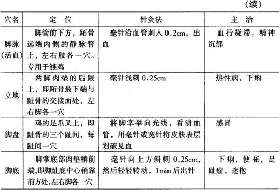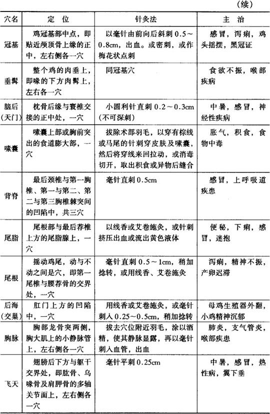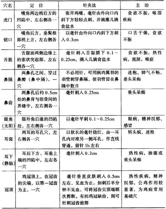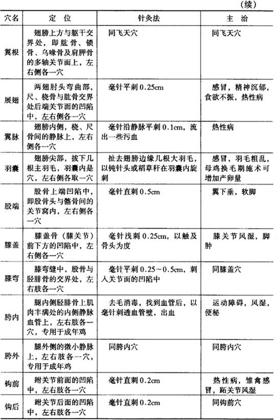 鸡的穴位