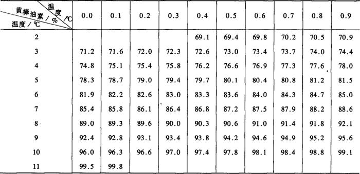 释义 | 黄樟油素的测定 1.定义和原理 用冻点法测定黄樟油素的含量。黄樟油素的含量与冰点有一定的关系。冻点越高,黄樟油素含量亦高。本法适用于对黄樟油素含量为69%以上的精油及单离香料的测定。 2.测定方法 同冻点测定法。 3.分析结果的表述 从冻点法测得冻点后,按表14-5换算成黄樟油素的质量分数。 表14-5 黄樟油素含量换算表(以质量分数计) 平行试验结果的允许差为1%。 4.注意事项 4.1 试验时必须加入微量的品种。 4.2 实验后要及时洗手,如黄樟油素有毒性。 |