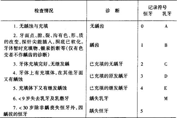 释义 | 龋齿 龋齿是在外界因素影响下,牙齿的牙釉质、牙本质或牙骨质发生的一种进行性破坏的疾病。 龋齿是少年儿童最常见的疾病之一。儿童患龋齿以后不仅引起疼痛,而且影响食欲、咀嚼和消化功能,从而影响生长发育。如不及时处理还可因细菌侵入继发牙髓炎、齿槽脓肿、颌骨骨髓炎等,造成一种进行性、破坏性的损害,导致患牙的全部破坏,甚至因局部病灶而引发全身疾患。 【病因】 1.细菌:细菌和菌斑是产生龋齿的根源,近年来科学实验进一步证实了细菌与龋齿发病的密切关系。口腔中细菌很多,其中变形链球菌和乳酸杆菌等是导致龋齿发生的主要细菌。牙菌斑(由黏附在牙面上的细菌和糖类食物残屑形成)是细菌生存和致病的环境,细菌和菌斑相辅相成,共同致龋。 2.机体的抵抗力:机体的抗龋力降低是龋齿发生的重要条件。机体的抗龋力包括全身和牙体自身的抗龋能力。机体缺乏蛋白质、维生素(尤其是维生素D、钙、磷等)会严重影响牙齿的发育,特别是牙本质钙化不良者易患龋齿。微量元素中以氟最为重要,氟在人体中主要存留在骨和牙齿中。适量的氟可以促进牙釉质内形成氟磷灰石,增强牙齿的抗酸和抗龋能力。 3.其他:龋齿与生活水平及饮食结构有关。糖类食物是产生龋齿的物质基础,是细菌进行代谢和形成牙菌斑的必需物质。大量证据表明糖类在龋齿发生中起重要作用。饮用水水质含氟水平低的社区患龋率高。 【临床特征与分类】 1.龋齿好发牙:乳龋的好发牙是下颌第二乳磨牙,其次是上颌第二乳磨牙,以后依次是:第一乳磨牙、乳上前牙、乳下前牙。在恒牙列中,好发牙是下颌第一磨牙(俗称“6龄牙”),其次是下颌第二磨牙,以后依次是:上颌第一磨牙、上颌第二磨牙、双尖牙、第三磨牙、上前牙,患龋最少的是下颌前牙。 2.龋齿好发牙面:咬合面居首位,其次是邻面,再次是颊面。 3.临床表现:开始无症状,待侵及牙本质时,才有不适感。主要表现为激发痛,即当刺激接触龋齿时感到疼痛,刺激除去,痛即消失。首先对化学性刺激敏感,吃糖时,感到一阵渗入到牙内的酸痛。再发展,则对温度性刺激特别是冷水敏感。更严重时可引起牙髓炎,不仅有激发痛,而且有自发痛(不给任何刺激,也会自动作痛),这时必须进行牙髓处理。 4.检查方法:在足够的光线下,借助反光镜和探针,按牙齿的顺序逐个检查全牙列。检查者要特别注意牙面的色、形、质的改变,用探针对点、隙、裂、沟等好发部位进行仔细检查。确诊的依据是肉眼看到龋洞,或用探针发现牙邻接面的龋洞。有时邻面龋要靠X射线检查发现,龋齿处因脱矿而在X射线相片上表现为透射区。 【诊断标准】 1.龋齿的诊断标准及记录符号(表2-11) 表2-11 龋齿的诊断标准及记录符号 2.观察核算单位与统计 (1)牙齿:最常用的单位,一般用于统计龋(Decayed)、失(Missing)、补(Filing)的牙齿数,用以说明人均患龋的严重程度。 龋、失、补牙数(D、M、F牙数):龋即患龋尚未充填的牙,失即因龋齿而丢失的牙,补即因患龋齿后已充填的牙。D、M、F牙数即为龋、失、补牙数之和。 比较不同的国家龋齿发病情况时,一般用12岁儿童的龋均进行。 (2)牙面:一般用于统计龋、失、补牙面数(DMFS)。 (3)患者:一般用于统计患龋的患者百分率——患龋率。用以说明龋病的分布情况。 【处理】 1.教育儿童从小注意口腔清洁,养成早晚刷牙、饭后或吃糖果后漱口、睡前不吃零食的习惯,同时还要掌握正确的刷牙方法。每次刷牙时间不应少于3分钟,刷牙的最佳时间是进食后3分钟。这是因为口腔中的细菌分解食物中的糖而产酸的过程都在饭后3分钟左右。要根据儿童的年龄选择适当大小的保健牙刷。牙刷不宜使用过久,最好每3个月更换一次,以免牙刷上附有细菌,引发疾病。 2.合理营养,增强机体和牙齿的抗龋能力:应适当多吃些豆类、乳、蛋类、芝麻、鱼虾以及含钙质较多的蔬菜等。茶叶含氟量较多,可适量饮用或用茶水漱口。要限制糖类的食用量,尤其不宜多吃粘稠的甜食、奶糖等,因为它们在牙面停留的时间很长,致龋作用大。可适量多吃一些富含纤维的蔬菜、水果。 3.全身性应用氟化物:居民和学校饮用水进行氟化,或口服氟片,食盐氟化。此法在许多国家应用后已取得明显效果,患龋率比原来下降60%。 4.局部应用氟化物,群众自身用氟,如用0.2%氟化钠溶液漱口,每周漱口1次,每次含漱2分钟,含漱前后均用清水漱口。用含氟牙膏刷牙是最简便易行的方法。其他方法还有专业人员涂氟、激光防龋、氟离子透入等,效果接近全身用氟。 5.窝沟封闭:用粘性塑料涂布于刚萌出恒牙的窝沟,以防止从此处开始龋坏。此法效果肯定,但需经过训练的人员操作。 6.已患龋齿的儿童应及时进行充填治疗。如无条件进行充填,则应转诊。 |