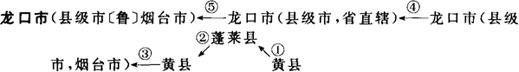 ①1912年称黄县;1959年1月并入蓬莱县。②1962年1月恢复黄县。③1986年9月23日,撤销黄县,设立龙口市(县级市),由烟台市代管。④1990年龙口市(县级市),由省直辖。⑤1995年龙口市(县级市)改为由省直辖,地级市代管。