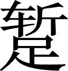 ❶猝;突然。例:狗猛~子蹿了出来。❍ 猛~子把人吓了一跳。❷疾进。例:这人走路~地快、跑~地快。唐慧琳《一切经音义》:“,正体从日作暂。猝也。”《集韵》:“,疾进也。”