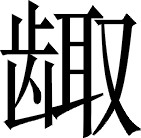 齿不正。例:他爱咬~人,胡乱提意见。❍ 牙龇~能西瓜皮!《说文》:“也。”又“,齿不正也。”