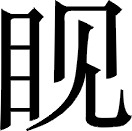 ❶好视。例:这人眼睛骚~,爱睄~漂亮的女性。❍ 他常偷~地盯人。❷小目皃。例:闭~一只眼,眇(ráo)~靶子打。《集韵》:“,好视。”《广韵》:“,小目皃。”
