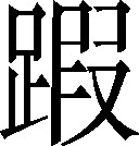 蹈。例:他的脚(jià)爱跳跂(qǐ)~舞。❍ 这人跂~大,不安顺守己!❍ 他爱~、跳~,脾气不好,见说就躁。《说文》:“,蹈也。”徐灏注笺:“止之引申为不行,反而为,则为蹈而行也。,古蹋(踏)字。”