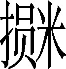 损米;坏米。例:用磨子(chè)苞谷~儿,熬稀饭喝。❍ 用磨子剌碎~,给牲口做精饲料。《玉篇》:“。”《集韵》:“,坏米。”