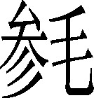 毛长披散皃。例:早上起来也不梳头,披了一颡的~头发,到处疯跑!❍ 披了一颡的~头发也不理!《字彙》:“,毛长。”《玉篇》:“,音篮。”《汉语大字典》:“,像长长的羽毛一样披散着。”