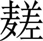 略舂(初碾);舂捣。例:谷子~几后,去杂质,再碾米。通“” “”《玉篇》:“,舂捣也。”《广韵》:“,谷麦净也。”