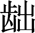 本指牙齿不齐而外露皃。今喻人不敢说话。例:你连个话都不敢说了,怕露齿~呢!❍ 你放大胆地说,他还咋价!~呀?《集韵》:“也。”《篇海类编》:“,齿不正也。”