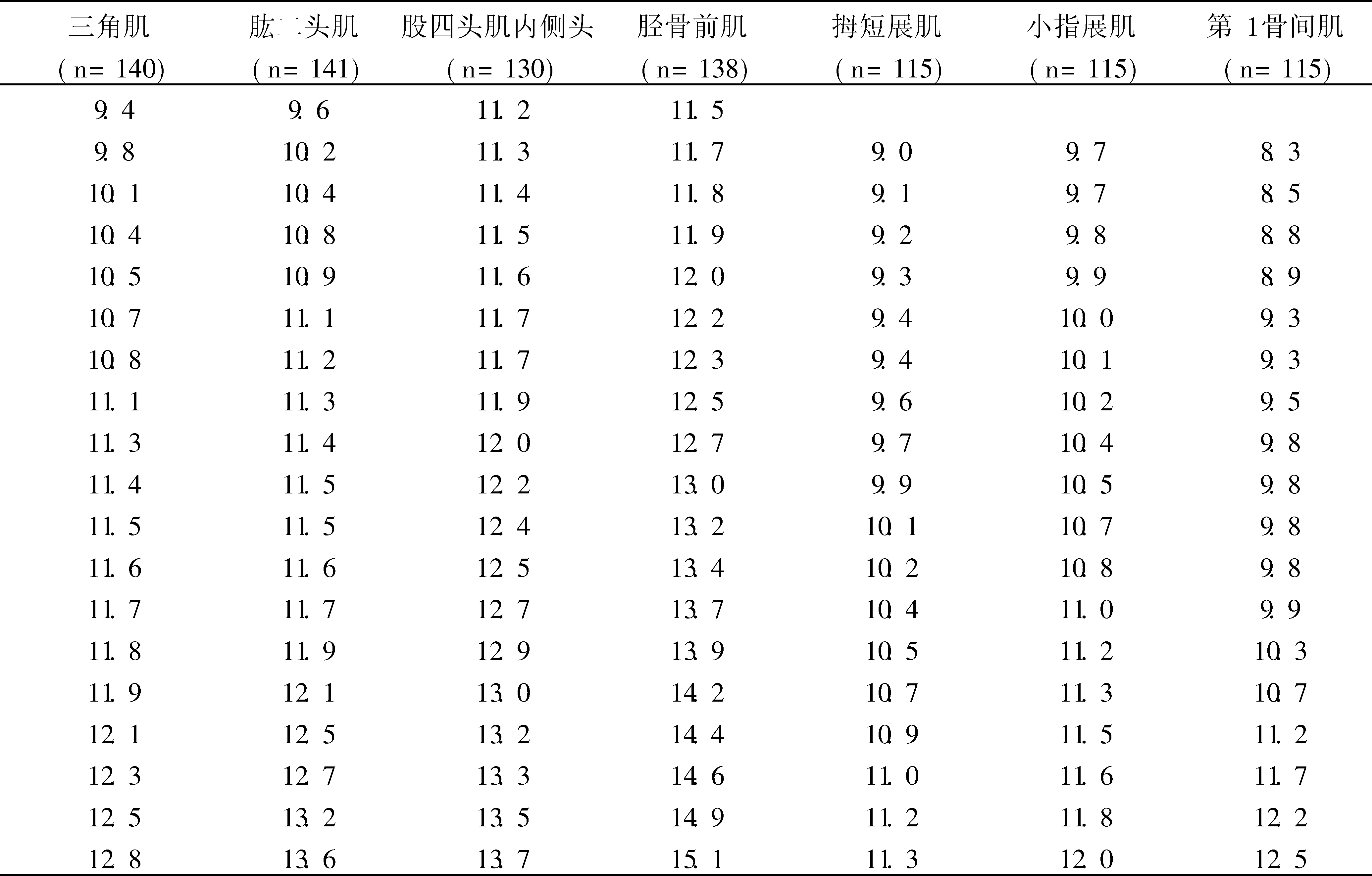 国人不同年龄各肌肉MUP时限的正常平均值(ms)
