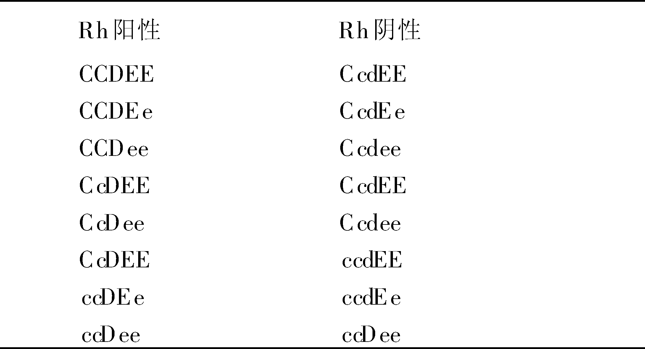 ☚ ABO血型系统 血液免疫反应 ☛ Rh血型系统 Rh血型系统Rh blood group system1940年,Landsteiner等用恒河猴(Rhesus monkey)的红细胞制备的免疫血清,能凝集85%的白种人的红细胞,认为呈凝集反应的人的红细胞与恒河猴有相同抗原,遂取Rhesus的前两字母“Rh”作为这种抗原名称。不起凝集反应的红细胞称为Rh阴性,约占15%。Rh血型有Cc、Dd、Ee三对等位基因,决定6个抗原,但d基因为沉默基因,不形成d抗原,也不产生d抗体。以5种抗原检查,Rh血型可有18种表现型: Rh血型18种表现型名称(Fisher) ☚ ABO血型系统的抗原与抗体 红细胞沉降率 ☛ |