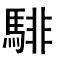 fēifēi〈文〉形容马行走的样子 △ 四牡~。 (騑)fēi [书] ❶ (古时指车前驾在辕马两旁的马) the two outside horses of a team of three in ancient times ❷ (泛指马) horse 騑; 篆 隶fēi【析形】形声字。古文字形从马,非声。 【释义】《说文》:“骖旁马。”古代驾车的四马中,在中间的叫“服”,在两旁的叫“”,也叫“骖”。笼统地说,骖和是同义词,对举区别时,骖指左骖,则指与左骖相对的最右边的马,即右。 【shape analysis】It is the pictophonetic character. In ancient character it is related to马(mǎ,horse) and sounds like 非(fēi). 【original meaning】Among the four horses of the ancient cart, the one in the middle was called 服(fú),while the ones on the sides were called 骖(cān).Generally speaking骖 and騑 are synonyms,骖 referring to the horse on the left while 騑 referring to one on the rightmost. ">/骖/绩/绪/">/续/绰/绲/绳/绳绳/维 ☚ 婉娈 "> ☛