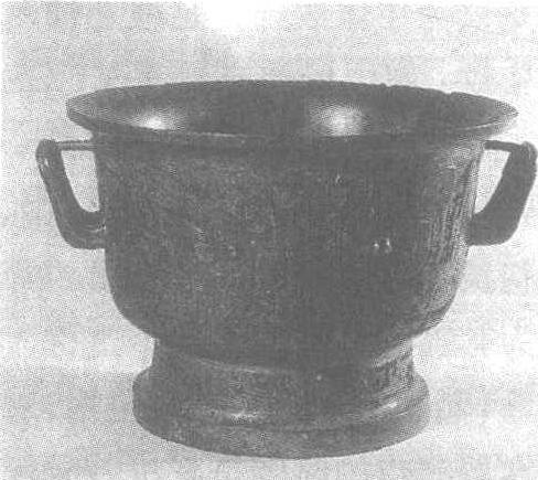 西周。高24厘米,口径33.9厘米。1955年辽宁省喀左马厂沟出土。北京中国历史博物馆藏。此盂碧绿色锈,晶莹美观。其形敞口,沿外撇,深腹,附耳,圈足。附耳与盂壁间有小横梁。腹部饰相对的龙纹,顾首,有长冠。圈足饰顾首夔纹。器内壁铸有铭文“(郾)侯作()盂”五字。同燕,此器当是燕侯盛钦食器。应为西周早期成王、康王时器物,造型及纹饰与黄河流域的青铜器风格相同,表明辽西地区当时已属于燕。