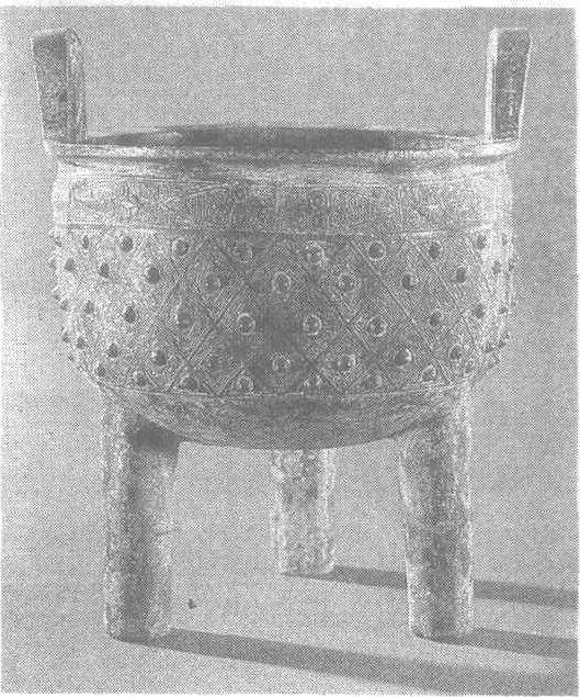 商。炊器,礼器。通高19.8厘米,口径16厘米。1970年河南省安阳市殷墟西区出土。北京中国社会科学院考古研究所安阳工作队藏。此鼎竖耳,方唇,腹呈半球形,圜底,柱足。口沿下饰一道蝉纹,腹部饰方格云雷纹、乳钉纹,腹内铸有铭文“告宁”二字。蝉纹、方格乳钉纹均盛行于商代后期,但两者相结合并不多见。鼎出自殷墟西区小墓群。当地墓葬的墓主人身份较低,与洹北大墓以及妇好墓等不同,青铜器的规模和装饰自然也有区别。