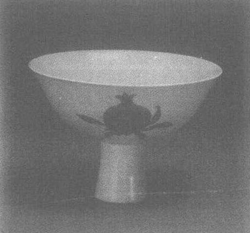 释义 | “大清雍正年制”青花釉里红三果纹高足瓷碗 “大清雍正年制”青花釉里红三果纹高足瓷碗清。高11.6厘米,口径16.6厘米。上海博物馆藏。青花釉里红俗称“青花加紫”,即在胎体上以青料和铜红料彩绘,罩透明釉后在高温中一次烧成。这一品种最早见于元代,其中釉里红不易烧制成功。明宣德以后不仅烧制较少,质量也欠佳。清康熙时再度恢复,到雍正时期已能熟练地掌握铜红釉的呈色技术。两种釉下彩均很完美。此高足碗施白釉,外壁以釉里红绘制桃、石榴、桔,并以青花点缀果实的叶子。青叶、红果的色泽都十分鲜艳。高足内沿有“大清雍正年制”青花楷书款。北京故宫博物院也藏有类似的器物。 ☚ 斗彩花卉纹双耳扁瓷瓶 青釉刻花云龙纹瓷缸 ☛ |