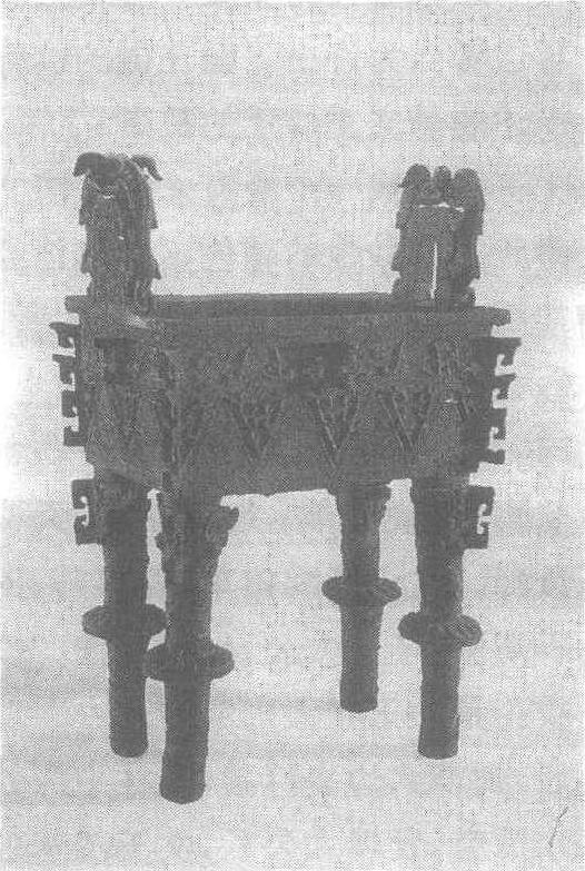 释义 | “太保”铜方鼎 “太保”铜方鼎西周。通高57.6厘米,口长35.8厘米。传山东省梁山出土。天津市艺术博物馆藏。此鼎立耳,折唇,浅腹,细长四柱足。双立耳外侧为两道鳞纹,上有相对垂角状兽。口沿下饰饕餮纹,中间有短扉棱,下为垂叶纹。腹部四角均起扉棱。四柱足以圆盘分为两节:上节饰饕餮纹,有扉棱,并有弦纹三道;下节亦有弦纹三道,铸铭文“太保铸”三字。此鼎四柱足至圆盘处长度已够,下又延长一节,极为奇特。 ☚ 夔纹铜禁 始皇诏铜椭量 ☛ |