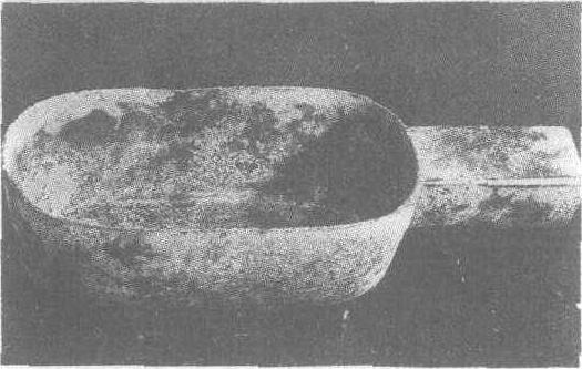 西汉。通长28.4厘米,高6.8厘米,口长20厘米,宽10厘米。容积1020毫升。测重1240克。山西省文物工作委员会藏。用铜制成,器作椭圆状,平底,有方形柄,柄下方刻一行铭文“常方,半,重五斤,内官造”九字。“常方”即“尚方”,是汉代官职名,属少府。“内官”,掌管皇帝宫室所藏之官吏。“半”指器物的容量。此器容与秦汉半斗的容量相近,“半”当是“半斗”的省略。