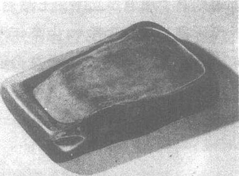 清。通长27厘米,宽18厘米,高4.5厘米。天津市艺术博物馆藏。用广东肇庆端石制成,质润细腻,长方形。边略加磨琢,砚面斜凹,背面阴刻一段小楷书洛神赋:“嬉,左倚采旄,右荫桂旗;攘皓腕于神浒兮,采湍濑之玄芝;余情悦其淑美兮,心振荡而不怡;无良媒以接欢兮,托微波而通辞;愿诚素之先连兮,解玉佩以要之;嗟佳人之信修兮,羌习礼而明诗;抗琼珶以和予兮,指潜渊而为期;执眷眷之欵实兮,懼斯灵之我欺!感交甫之弃言兮,怅神光离合,作阴乍阳;竦轻躯以鹤立,若将飞而未翔;践椒涂之郁烈,步蘅薄而流芳;超长吟以永慕兮,声哀万而弥长;尔廼众灵难遝,命俦啸侣,或戏清流,或翔神渚,或采明珠,或拾翠羽;从南湘之二妃,携汉滨之游女;欢瓠瓜之无匹兮,泳牵牛之独处;扬轻袿之猗靡兮,翳修袖以延伫;体速飞。乾隆己巳五月二十八日钱唐义门六十子裘尊生临大令洛神赋于水部之官衙。”共计13行。裘尊生,字果万,一字义门,号青萝,钱塘(今浙江杭县)人,善书画,工人物、花鸟,传世品有《松鹤图》。