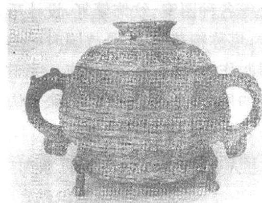 释义 | “邓公牧”铜簋 “邓公牧”铜簋春秋。盛食器。通高22.5厘米,口径18.5厘米,腹径23厘米,腹深11.4厘米。重4.6公斤。1979年湖北省襄樊市文物管理处拣选。湖北省襄樊市文物管理处藏。此簋有盖,子母口,鼓腹,平底,圈足下附三兽面足。盖顶有喇叭状提手,长舌兽首耳,兽角弯曲斜旋,两珥下垂。器口沿及盖沿均饰窃曲纹,间以兽面纹,腹部及盖顶均饰瓦纹,圈足饰三角雷纹。盖内铸有“邓公牧乍(作)簋”六字铭文。此器与河南潢川出土的春秋铜簋极其相似。据形制、纹饰、铭文,当属春秋早期之器。 ☚ ">“曾仲子 “孟姬”铜簋 ☛ |